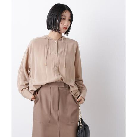 軽やかな着心地がポイントのルーズシルエットシャツ。程よい透け感と、柔らかいソフトな風合いの素材で仕立てた一着。フード付きのカジュアルなデザインながら、落ち感のあるシアー素材が上品さをプラスしてくれます。