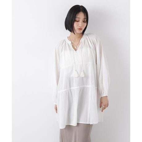 華やかなティアードデザインが目を惹く、大人フェミニンなチュニックブラウス。ナチュラルな風合いと、軽やかでエアリーな素材感が魅力。動くたびにふんわりと揺れるシルエットが上品で、オンオフ問わず幅広いシーンで活躍します。