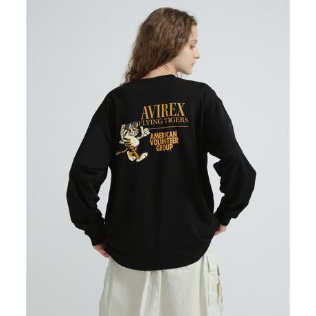 [型番:7835230602]・毛羽が少なく、なめらかでさらっとした素材感のTシャツ・FLYING TIGERSを発泡プリントで仕上げた、ポップなアイテム・ラフに着られるオーバーサイズシルエット【AVIREX WOMAN】本格的なミリタリーウェアが持つ機能性とデザインをレディースカジュアルに投影したライン。個性的かつ時代性のあるレディースブランドとして聡明、自由、好奇心、凛として快活な働く大人の女性へ向けたレディスカジュアルを提案しています。