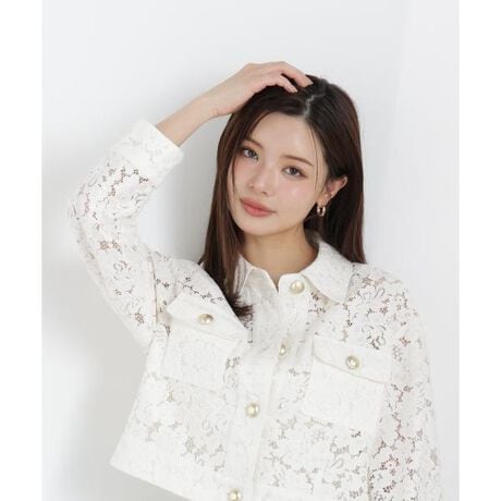上品なレース素材にゴールドカラー釦が映えるブルゾン。裏地なしの軽やかな着心地で、シャツ感覚でさっと羽織れる一枚です。涼しげな印象でこれからの季節に活躍し、着るだけでトレンド感のあるスタイルが完成します。