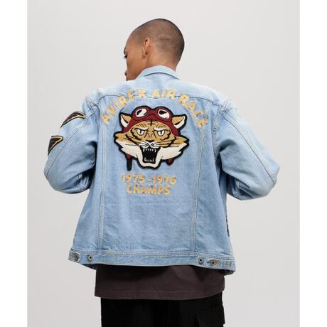 ・A.A.R.Cのデニムジャケット・架空のレーシングクラブ『AVIREX AIR RACING CLUB』をモチーフにしたデザイン・架空のエアレースのチャンピオンジャケットをイメージ・チェーン刺繍とサガラ刺繍を使用・13.5オンスのデニムを採用【AVIREX/アヴィレックス】1975年にアメリカ空軍のコントラクターとして創業し、フライトジャケットを供給した事でその認知度を飛躍的に高めた。ミリタリーに起源を持つアヴィレックスは、機能的なデザインが醸し出す特有の美しさに支えられている。その個性的な表情は、映画「インディー・ジョーンズ」「トップガン」「メンフィスベル」などのスクリーンでも活躍し、喝采を浴びた。その無駄の無いデザイン、ノスタルジックな味わいは今なお世界中の多くの人々から支持され続けている。■お使いのパソコンのモニターによって、実物商品とカラーが異なって 見える場合があります。誠に申し訳ございませんが、ご理解下さいます様お願いいたします。■当ショップの在庫数は 直営店舗の商品も含まれています。在庫数が日々変動する為、ご注文頂いた時点で在庫が完売になっている場合がございます。■サイズ表は、製品の生地や織りなどの特性により、多少の誤差はございます。予めご了承ください。■画像の商品はサンプルです。実際の商品では、仕様・加工等若干異なる場合がございます。