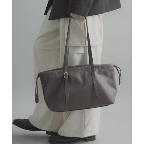 ・メイン収納を絞ることで巾着フォルムになり、コーディネートに柔らかなニュアンスをプラス。シンプルながらも存在感があり、スタイリングのアクセントとして活躍します。