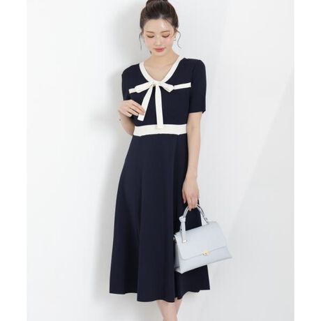 毎シーズン人気のバイカラーニットワンピースを、今年らしいリボンタイデザインでアップデート!やりすぎないフィット&フレアシルエットがスタイルアップを叶えてくれます。清涼感のある糸を使用しており、春先まで長く着用いただけます。