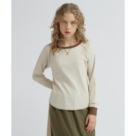 ・ハニカムワッフル生地を使用したラグランクルーネックTシャツ・ 配色リブと配色ステッチがアクセントに。・インナーとしても着用しやすいサイズ感で仕上げており汎用性の高さも魅力的なアイテムです。【AVIREX WOMAN】本格的なミリタリーウェアが持つ機能性とデザインをレディースカジュアルに投影したライン。個性的かつ時代性のあるレディースブランドとして聡明、自由、好奇心、凛として快活な働く大人の女性へ向けたレディスカジュアルを提案しています。