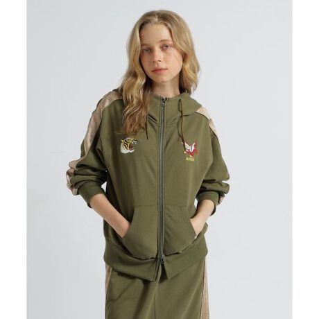 ・スカジャンのグラフィックを使用したパーカー・袖ラインには、スカジャンをイメージしたサテンの生地を使用・サテン部分の接ぎ部分にはロープ型のパイピングを挟み込んでいます。・程よくゆとりがありつつ、スッキリとしたシルエット・同シリーズのスカート(品番:7835216603)とセットアップでの着用も可能です。【AVIREX WOMAN】本格的なミリタリーウェアが持つ機能性とデザインをレディースカジュアルに投影したライン。個性的かつ時代性のあるレディースブランドとして聡明、自由、好奇心、凛として快活な働く大人の女性へ向けたレディスカジュアルを提案しています。