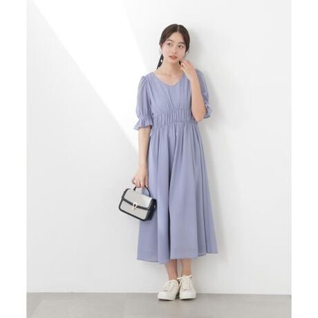 ウエスト切り替えがポイントのワンピース。スタイルアップが叶うよう細部までこだわったデザインです。二の腕をカバーする袖丈、顔まわりはすっきりと見せつつ、甘さと大人っぽさを演出。表面感のある楊柳素材で柔らかく上品な印象に仕上げています。