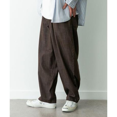 カラーはブルー、ブラック、ブラウンの展開で通年で使いやすく、春は薄手シャツやカットソーと軽く合わせるのがおすすめです。普段の着回しに取り入れやすい、楽に穿けて雰囲気のある一本を探している方に向くアイテムです。