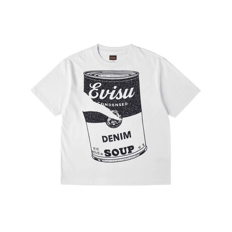 EVISUが遊び心ステートメントピースをデビュー:デニムスープショートスリーブTシャツ、100% コットンでブランドアイデンティティと気まぐれなデザインを融合。前面「Denim Soup」缶グラフィックプリント?ブランドのシグネチャーユーモアとストリートウェアエッジのブレンドを体現?リラックスシルエットで現代カジュアルワードローブに汎用性を。快適さと視覚インパクトで作られ、季節スタイリングの際立つステープルに。