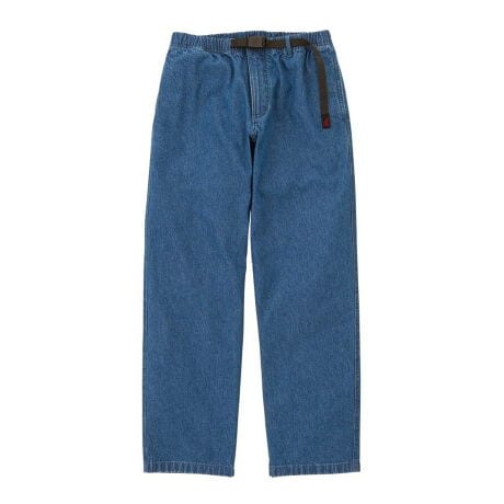 180度の開脚を可能にするガセットクロッチと、片手で調整できるウェビングベルトを備えたイージーウエスト。 これらのディテールは、1980年代にクライマーとして培われた実体験をもとに、「過酷な環境下でも快適に動けること」を追求した結果、生み出されました。 GRAMICCI PANTは、クライマーが本当に必要とする機能性を日常着として成立させた、ブランドを象徴する一本です。 素材には、環境に配慮したサステナブル原料を用いた11オンスデニムを採用。 適度な厚みとハリを備えた生地は、安定感のある穿き心地をもたらし、動きの多いシーンでもシルエットを美しく保ちます。 腿から裾にかけて程よくゆとりを持たせたSTRAIGHT FITと組み合わせることで、素材の表情を引き立てながら、リラックス感と実用性を両立しています。