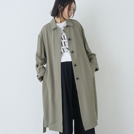 上質なアセテート素材を使用したステンカラーコート。