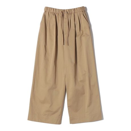 ハリのある素材感が上品な印象を与えつつ、ワイドすぎない絶妙なバランスでラフに着こなせます。