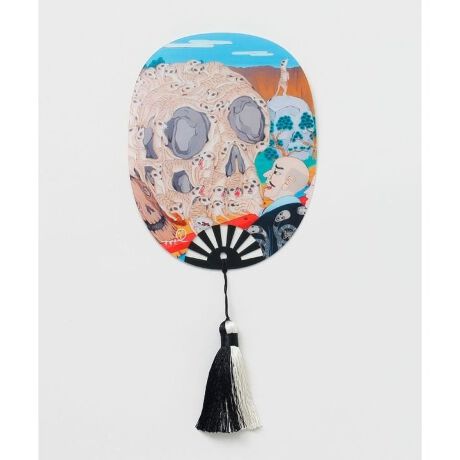 [型番:75FP6102-2026]【倭物やカヤ×鈴木ひょっとこ】伝統×現代の融合を魅力的に描く、画家・鈴木ひょっとことのコラボ商品。鮮やかな色彩と独特な世界観が表現されたアクリル団扇。タッセルが上品なアクセントとなり、飾っても使っても楽しめるデザイン。和の趣とモダンアートが調和した、インテリアにも映えるアイテムです。