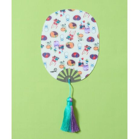 [型番:75FP6102-2026]【倭物やカヤ×鈴木ひょっとこ】伝統×現代の融合を魅力的に描く、画家・鈴木ひょっとことのコラボ商品。鮮やかな色彩と独特な世界観が表現されたアクリル団扇。タッセルが上品なアクセントとなり、飾っても使っても楽しめるデザイン。和の趣とモダンアートが調和した、インテリアにも映えるアイテムです。