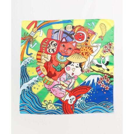 [型番:73RP6101-2026]【倭物やカヤ×鈴木ひょっとこ】伝統×現代の融合を魅力的に描く、画家・鈴木ひょっとことのコラボ商品。独特な世界観が際立つ風呂敷。撥水加工付きで雨の日も安心、中風呂敷サイズでお弁当包みやエコバッグ代わりにも活躍します。大胆な和柄が日常に個性を添える一枚です。