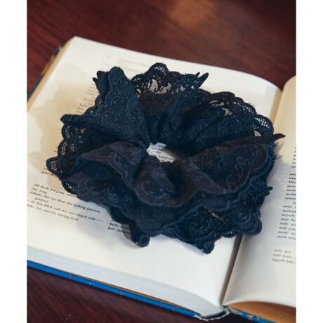 ローズモチーフのレースが優雅な印象のシュシュヘアゴム。透け感と立体感のあるデザインが、後ろ姿を華やかに演出します。フォーマルにもカジュアルにも馴染む万能アイテム。