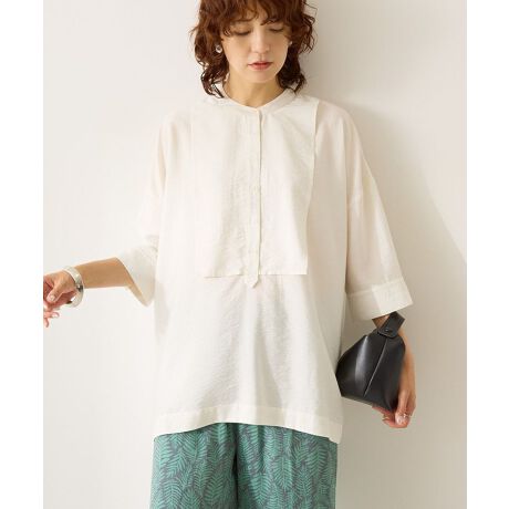 バンドカラーのデザインがすっきりとした首元を描くのもポイント◎