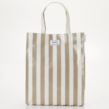 A4サイズの書類もおさまるサイズ感。定番ストライプでありながら、やや主張のある幅感で、印象的な仕上がりになりました。白を基調とした、清潔感や清涼案が魅力です。