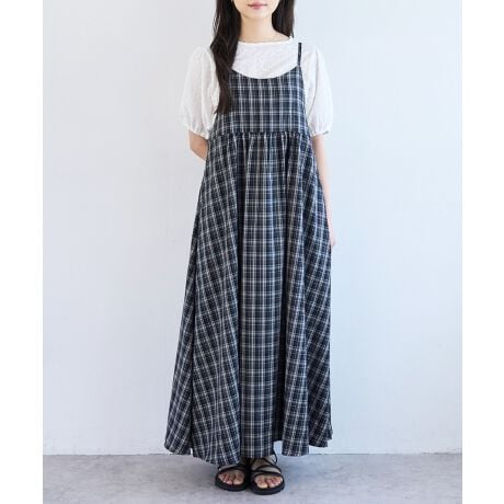 大人かわいいチェック柄と、ナチュラルな表情のドビー柄が魅力のキャミワンピース。