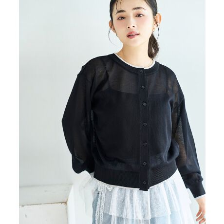 ヘルシーな透け感と、洗練された配色ラインが目を惹くシアーニットカーディガン。