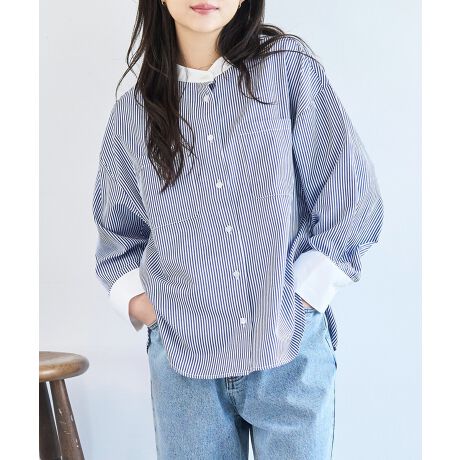 【通勤・オフィス】ドルマンスリーブ クレリック シャツ / ストライプ 【mil (ミル)】