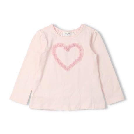 ネットショップと専門店、セレクトショップ限定のアイテム!直営店では直営オンラインショップ「こどもの森e-shop」各店のみでの販売になります。【直営実店舗での販売はありません。】ハートのチュールフリルが可愛い長袖Tシャツ、ロンT。ふんわりと広がる、後ろ裾の切替フレアで後ろ姿も可愛い1枚。衿ぐり後ろもゴム仕様で着脱もスムーズに出来ます!【アイテム】トップス シンプル ガーリー フェミニン カジュアル お洒落 オシャレ かわいい 可愛い 普段着 デイリーウェア お出かけ着 お外着 お外遊び着 子ども こども 女児 女の子 ガールズ キッズ ベビーサイズ トドラーサイズ 幼稚園 保育園 小学校 通園 通学 小学生 2026年春夏物新作 丸高衣料 ロングスリーブ 長袖 ピンク ベージュ ウィルメリー コットン100% 綿100%