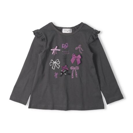 【WEB限定】リボン付プリント肩フリル長袖Tシャツ