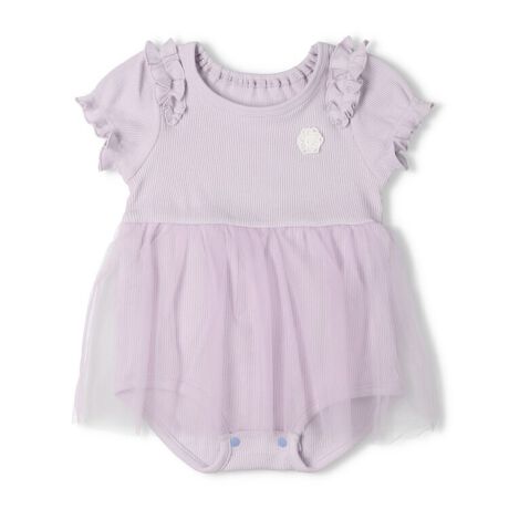 伸縮性のあるリブ素材の身頃にふんわりチュールのスカート。コーディネートが1枚で決まるブルマデザインの半袖Tオール、ロンパース。肩のフリルやお花のモチーフもガーリーな印象。股下のボタン仕様の被りで着せるデザインになります。【アイテム】プレゼント ギフト 赤ちゃん服 ベビー服 贈り物 トップス ボトムス つなぎ カジュアル お洒落 オシャレ かわいい 可愛い 普段着 デイリーウェア お出かけ着 ロンパース Tオール 長袖 ロングスリーブ 子ども こども 女児 女の子 ガールズ キッズ ベビーサイズ 保育園 通園 2026年春夏物新作 丸高衣料 お花 ラベンダー 薄紫色 ピンク キッズズー コットン100% 綿100%