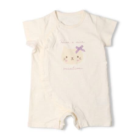 ねこ・うさぎプリント半袖ロンパース