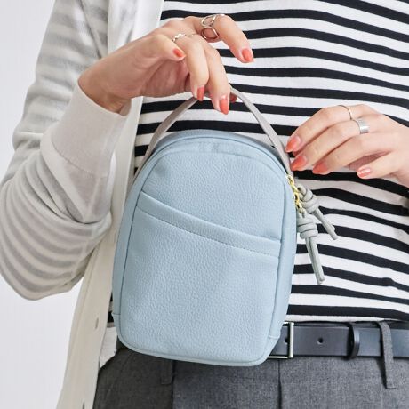 ポーチ置き場のないときでもドアノブや手に掛けて