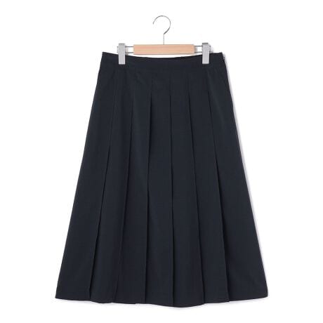 折り目正しいプリーツで、着こなしにを上品に映し出すスカート。腰まわりのプリーツは固定しており、広がりを抑えているのもポイントです。軽やかな質感ながらもきちんとした印象で楽しめる素材を使用。ジャケットなどを合わせれば、改まったシーンにも活躍します。トップスの裾をインさせるとバランスの取れたコーデが完成。