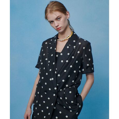 透け感と程よい張りのあるオーガンジーに、ドットプリントを施した国内素材を使用。ルル・ウィルビーでもご好評いただいている、実績のある人気素材です。