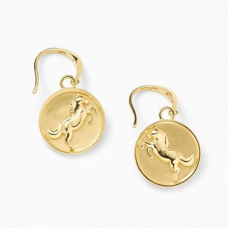 幸運が駆け込んでくると言われている馬モチーフのフックピアス。