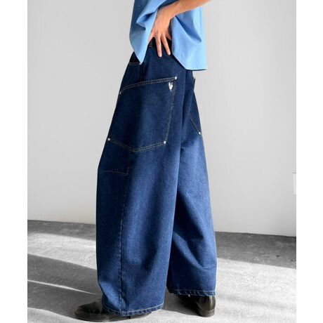 10.5ozのデニムを使用したワイドバルーンカーブパンツ。
