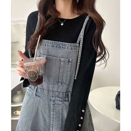 華奢なストラップが、きれめな印象のデニムサロペット。