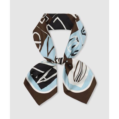 ベルトやバックルのモチーフをアルファベットと合わせて手描き風のモチーフにして更にカラーブロックでアレンジした柄で作成したスカーフです。