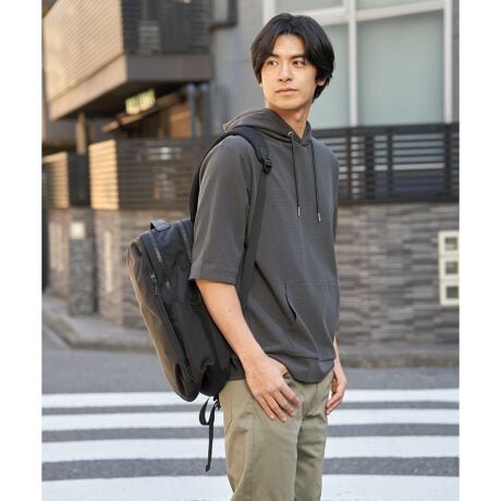 [型番:11321209]接触冷感機能を備えた素材を使用した、軽やかに着られる5分袖パーカ。袖口裏には別生地をあしらい、折り返して着用できる2WAY仕様で、さりげない変化を楽しめるデザインです。パーカー