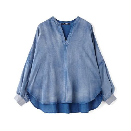 ドルマンスリーブが印象的な、デニム素材のブラウスが登場です。