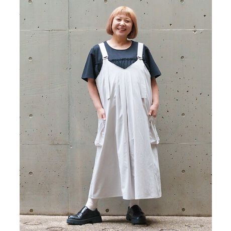軽やかなシュワシュワ生地で仕立てた、前後着用可能なキャミワンピースです。