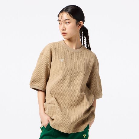 [型番:HAP4238]ストレッチ性に優れたワッフル素材を使用したTシャツ。袖はリブ仕様。