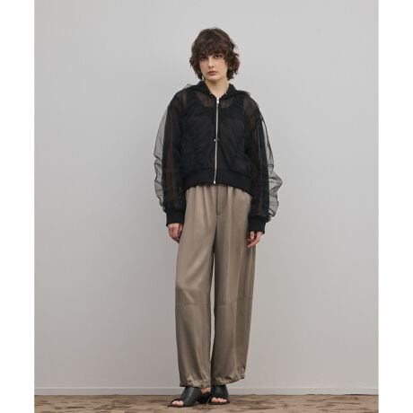 [型番:0326141358]チュールを3種類使用した透け感のあるパーカーブルゾン。ギャザーを入れて陰影を際立たせたデザインがポイント。※こちらのモデル着用画像はサンプル品を撮影しております。実際の商品と仕様、加工、サイズが若干異なる場合がございます。予めご了承くださいませ。
