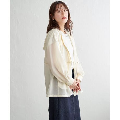 ほんのり透けるシアー素材で軽やかに羽織れる、シーズンムード漂うマウンテンパーカー。