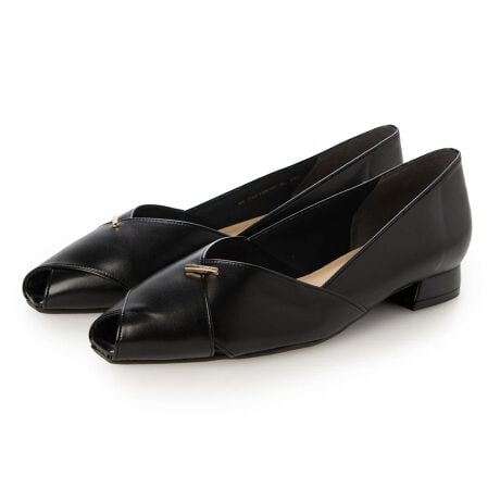 ゴールド金具がきらりと光るワンポイントオープントゥパンプス。