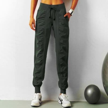 -ギャザー切り替えのディテールがポイントのジョガーパンツ