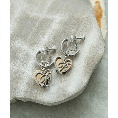 [型番:FA37315]<26春夏新作>POINT・ハートの中にRのロゴが入ったデザインイヤリング・ミックスの配色がさりげないポイントに・メタル素材で甘くなりすぎず、大人可愛い印象に
