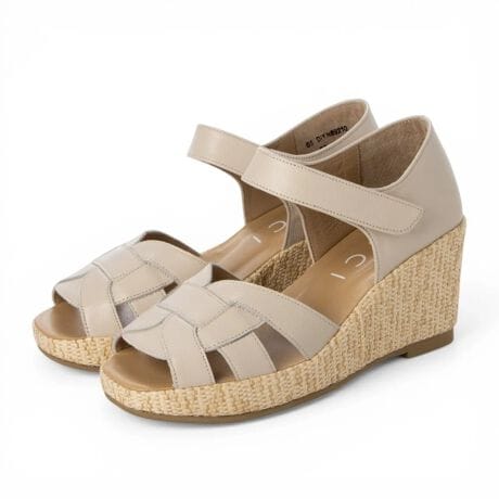 パナマ生地×レザーの涼しげな素材感が魅力のウェッジサンダル。