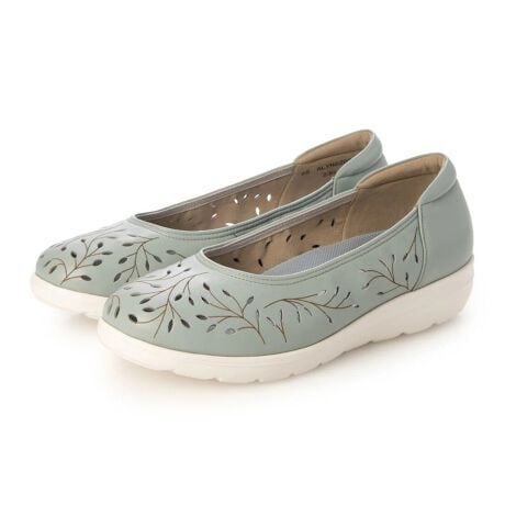 レーザーカットが素敵な春らしいカジュアルパンプス。