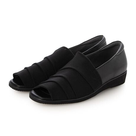 ドレープデザインが上品な印象のウエッジヒールのオープントゥパンプス。