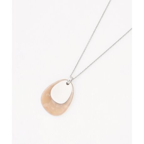 ■デザインアセチとメタルを組み合わせ、アシンメトリーなオーバルモチーフに仕上げたネックレスです。シリコンボールを使用しており、着脱しやすい仕様となっています。ほどよいサイズ感で、スタイリングのワンポイントとしてさりげなくアクセントを添えてくれます。