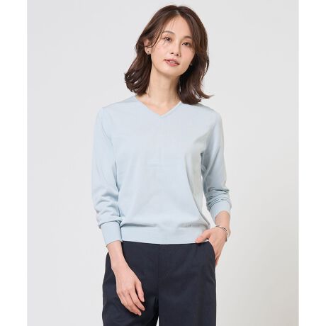 ■デザイン顔周りをすっきり見せる、深すぎないVネックがポイントの天竺ニット。秋冬の人気シリーズをベースに、春夏らしい軽やかさを加えました。デコルテをきれいに見せつつ、きちんと感を演出するVネックは、大人の女性にぴったりのデザイン。ジャケットのインナーとしてはもちろん、休日のカジュアルスタイルにも活躍する、着回し力の高いベーシックアイテムです。カラーは、肌なじみがよくやさしい印象のライトベージュ(#002)、大人の着こなしに華やかさをプラスするローズピンク(#012)、春の軽やかさを感じさせるイエロー(#040)、清潔感のある色合いで爽やかさのあるアクア(#072)、きちんと感のあるシーンレスで使えるネイビー(#075)の5色展開です。