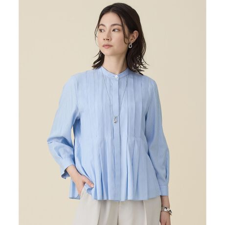 立体タックが華やかなデザインブラウス■デザイン前後の身頃にたっぷりとタックを施したデザインブラウスです。胸もとからタックが自然に広がり、ペプラムのようなシルエットが1枚着でも華やかな印象に。ボリュームのある身頃を引き立てるために、袖は控えめなフォルムで仕上げ、すっきりとした着こなしを叶えます。ほどよい着丈で、さまざまなボトムスとバランスよく合わせていただけます。■素材ヨーロッパのメゾンブランドをはじめ、世界中に顧客を持つトルコの BEZ TEKSTIL社で作られた、セルロース100%のポプリンシャツ素材です。繊維が細く毛羽立ちの少ないマイクロ糸を使用しているため、シャープでコンパクトな風合いと、繊細で滑らかなタッチが特徴です。美しいドレープ性に加え、ほどよいハリとコシも併せ持つ、しなやかなブラウス素材です。■同素材シャツブラウス(BLW7LM0308)